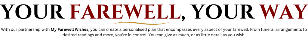 We understand that every individual is unique, and so are their wishes for their final farewell. Our Pre-Planning Services in partnership with My Farewell Wishes empower you to take control of your legacy, ensuring your wishes are honoured and your loved ones are relieved of unnecessary stress during a difficult time.